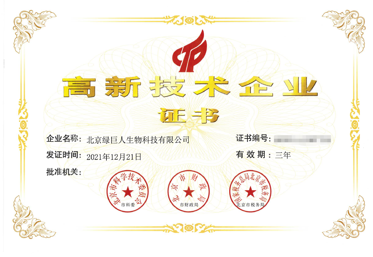喜訊:北京綠巨人通過高新技術(shù)企業(yè)資格認(rèn)定
