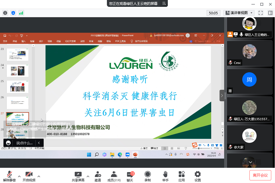線上方面,北京綠巨人攜手北京市左家莊街道及崔各莊地區(qū),于6月6日當天,開展 “6月6日世界害蟲日主題消殺四害講座” 線上培訓,由沈陽農(nóng)業(yè)大學植物保護專業(yè)錢海濤博士主講,傳播科學防制理念,消除疾病傳播危害,提升轄區(qū)內(nèi)單位、商戶及居民對有害生物防制的正確認知、藥物安全管理及應(yīng)用、應(yīng)急處理方法及病媒防制專業(yè)公司如何選擇等消殺知識,共計參加培訓人數(shù)達300人,轄區(qū)單位和居民熱烈響應(yīng),在“專家問答環(huán)節(jié)中”,屏幕上布滿了居民們迫切想要了解的各種消殺問題,錢博士一一解決了他們居家和辦公中苦惱的防制四害的問題。